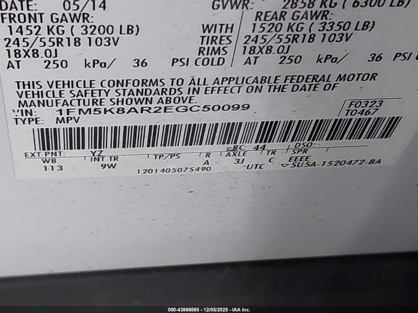 Колір БілийЦиліндри 6Привід Повний привідVIN 1FM5K8AR2EGC50099Стан СтаціонарноУшкодження По всьому авто