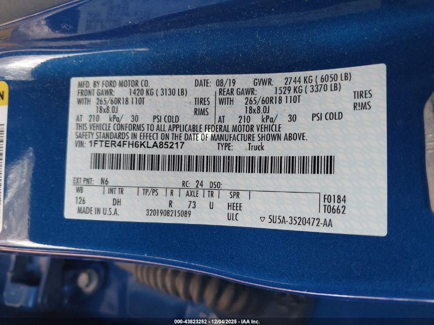 Колір СинійЦиліндри 4Привід Повний привідVIN 1FTER4FH6KLA85217Стан Заводиться та їде (перевірено)Ушкодження Права сторона AutoRIA