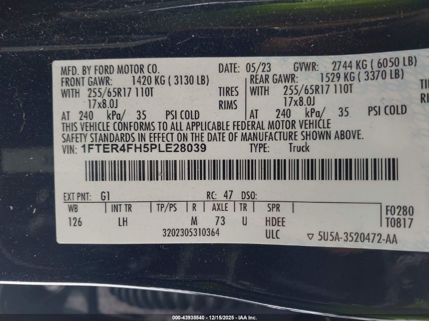 2023 FORD RANGER 2023 року Бензин, 2.3, Повний привід, vin - 1FTER4FH5PLE28039 з США