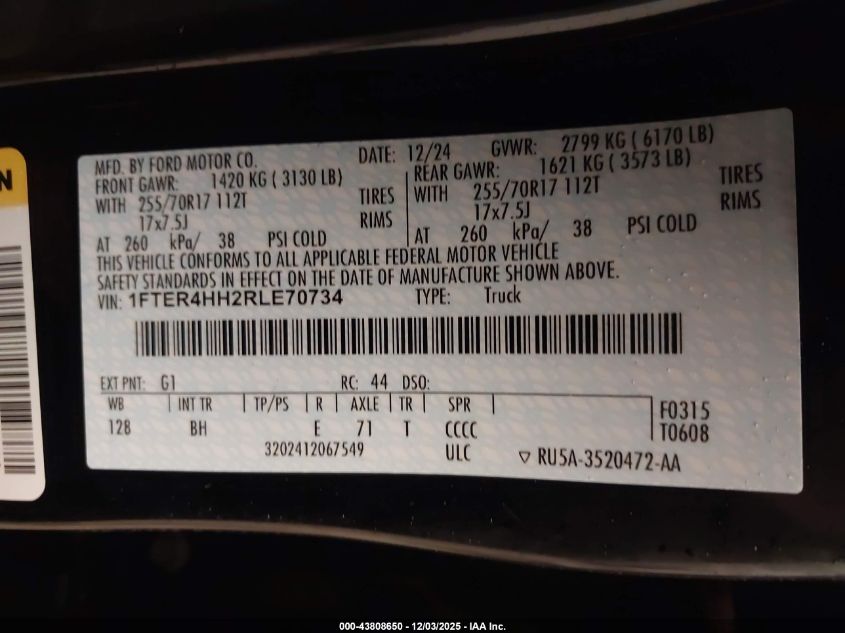 2024 FORD RANGER 2024 року Бензин, 2.3, Повний привід, vin - 1FTER4HH2RLE70734 з США