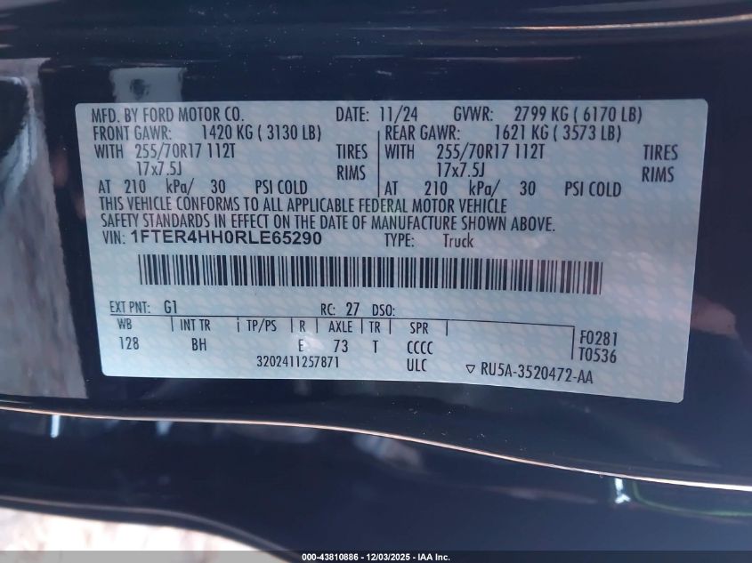 2024 FORD RANGER 2024 року Бензин, 2.3, Повний привід, vin - 1FTER4HH0RLE65290 з США