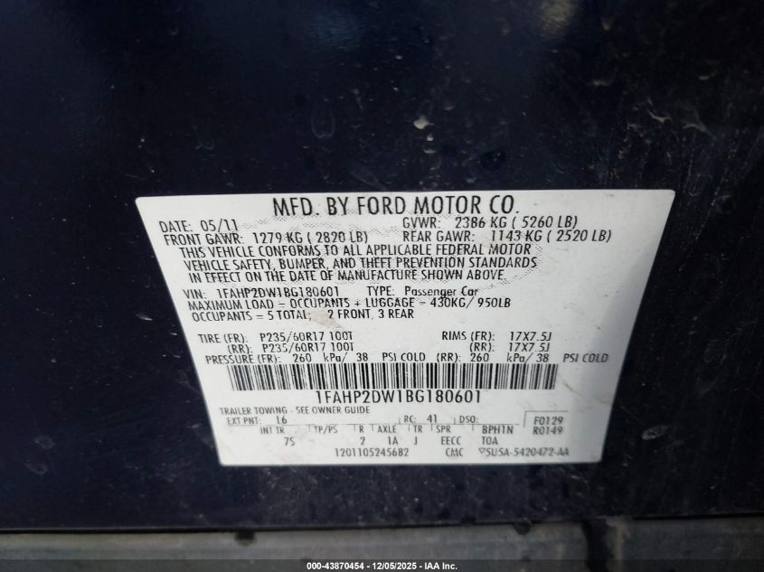 2011 FORD TAURUS 2011 року Бензин, 3.5, Передній привід, vin - 1FAHP2DW1BG180601 з США