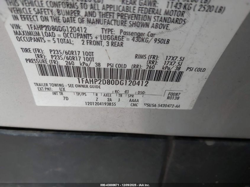 2013 FORD TAURUS 2013 року Бензин, 3.5, Передній привід, vin - 1FAHP2D80DG120412 з США