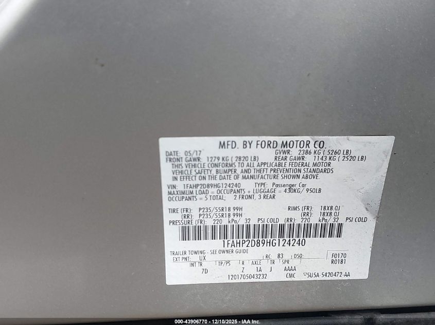 2017 FORD TAURUS POLICE INTERCEPTOR