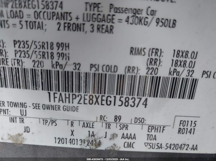 Колір СірийЦиліндри 6Привід Передній привідVIN 1FAHP2E8XEG158374Стан Заводиться та їде (перевірено)Ушкодження Права сторона AutoRIA