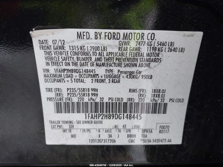 2013 FORD TAURUS 2013 року Бензин, 3.5, Повний привід, vin - 1FAHP2H89DG148445 з США