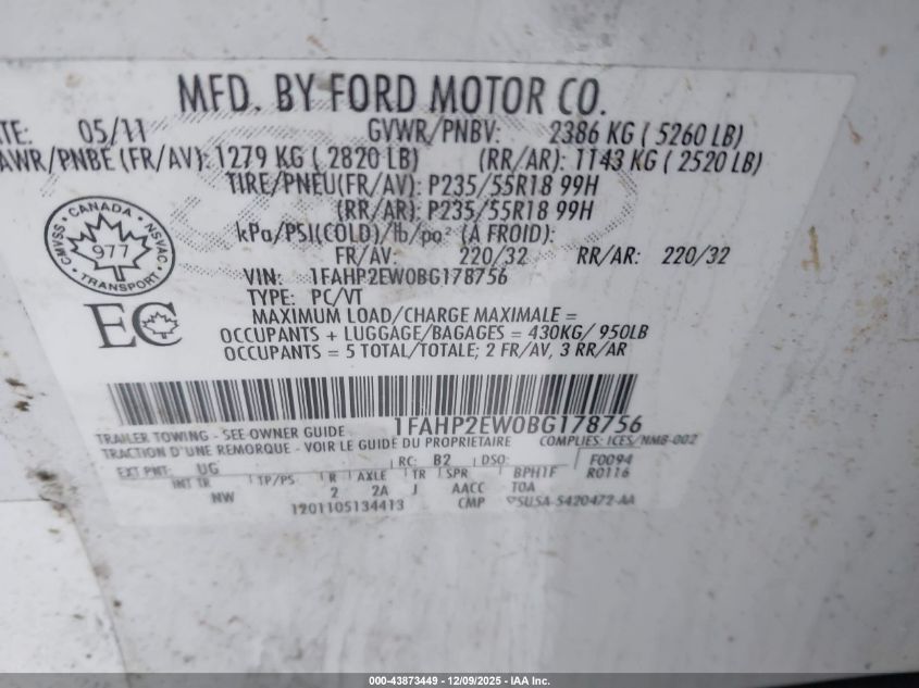 2011 FORD TAURUS 2011 року Бензин, 3.5, Передній привід, vin - 1FAHP2EW0BG178756 з США