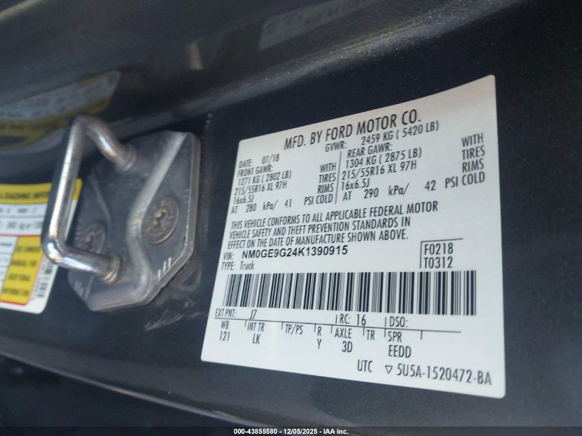2019 FORD TRANSIT CONNECT 2019 року Бензин, 2.0, Передній привід, vin - NM0GE9G24K1390915 з США
