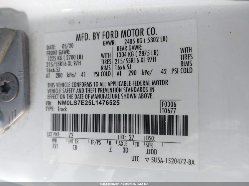 2020 FORD TRANSIT CONNECT 2020 року Бензин, 2.0, Передній привід, vin - NM0LS7E25L1476525 з США