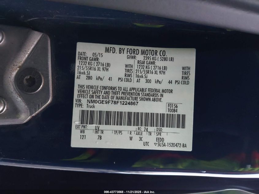 2015 FORD TRANSIT CONNECT 2015 року Бензин, 2.5, Передній привід, vin - NM0GE9F78F1224867 з США