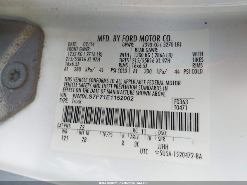 2014 FORD TRANSIT CONNECT XL