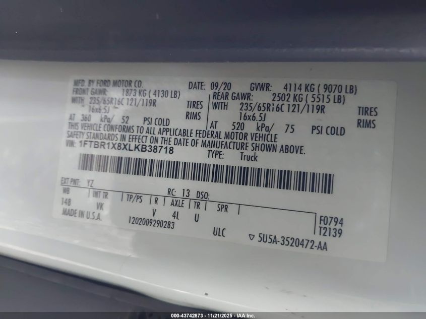2020 FORD TRANSIT 2020 року Бензин, 3.5, Задній привід, vin - 1FTBR1X8XLKB38718 з США