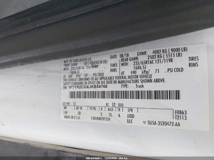 2018 FORD TRANSIT T-350