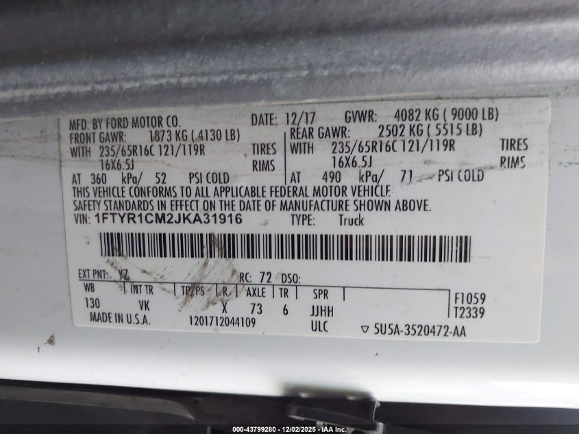 2018 FORD TRANSIT 2018 року Бензин, 3.7, Задній привід, vin - 1FTYR1CM2JKA31916 з США