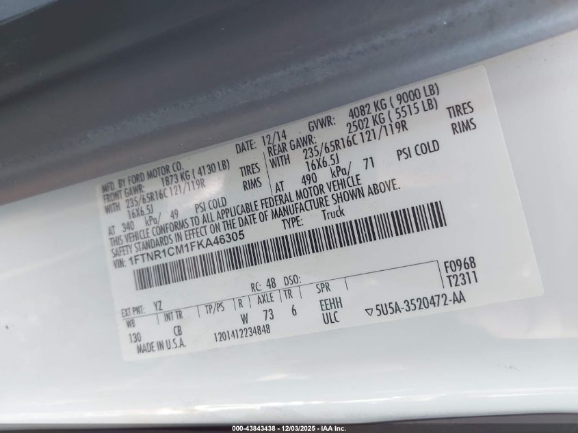 2015 FORD TRANSIT 2015 року Бензин, 3.7, Задній привід, vin - 1FTNR1CM1FKA46305 з США