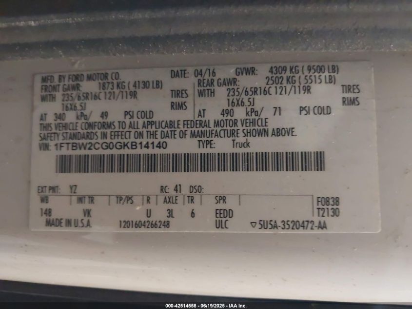 2016 FORD TRANSIT 2016 року Бензин, 3.5, Задній привід, vin - 1FTBW2CG0GKB14140 з США