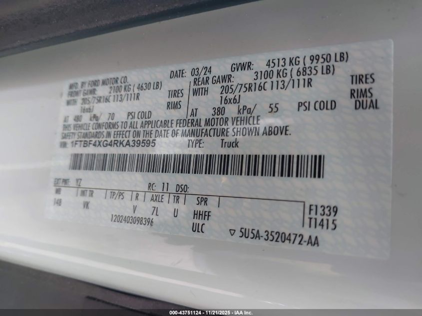 2024 FORD TRANSIT 2024 року Бензин, 3.5, Задній привід, vin - 1FTBF4XG4RKA39595 з США