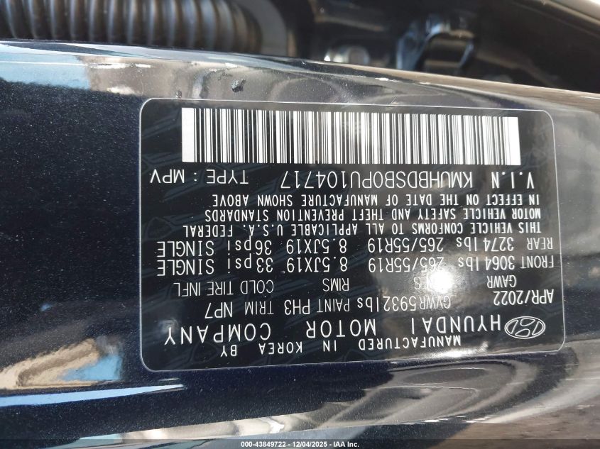Колір СинійЦиліндри 4Привід Повний привідVIN KMUHBDSB0PU104717Стан СтаціонарноУшкодження Ліва сторона