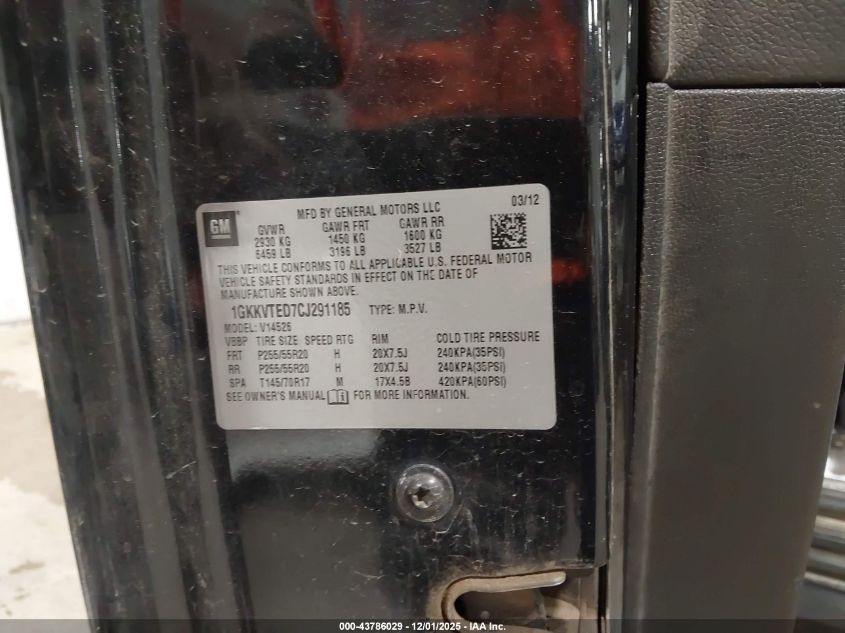 2012 GMC ACADIA 2012 року Бензин, 3.6, Повний привід, vin - 1GKKVTED7CJ291185 з США