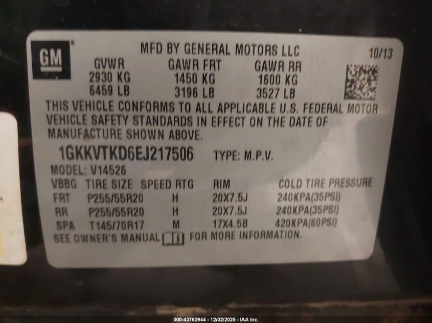 Колір ЧорнийЦиліндри 6Привід Повний привідVIN 1GKKVTKD6EJ217506Стан СтаціонарноУшкодження Передня або задня AutoRIA