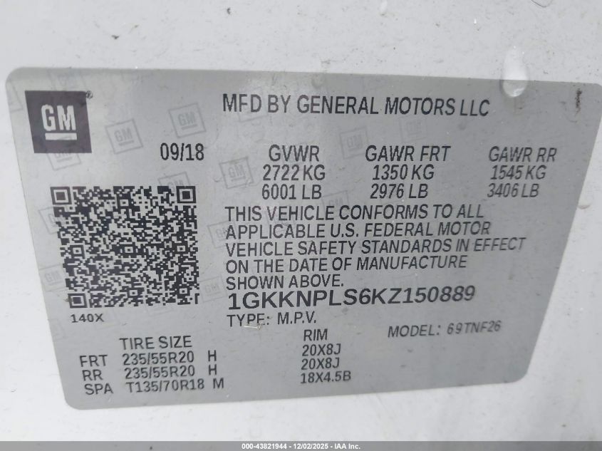 2019 GMC ACADIA 2019 року Бензин, 3.6, Передній привід, vin - 1GKKNPLS6KZ150889 з США