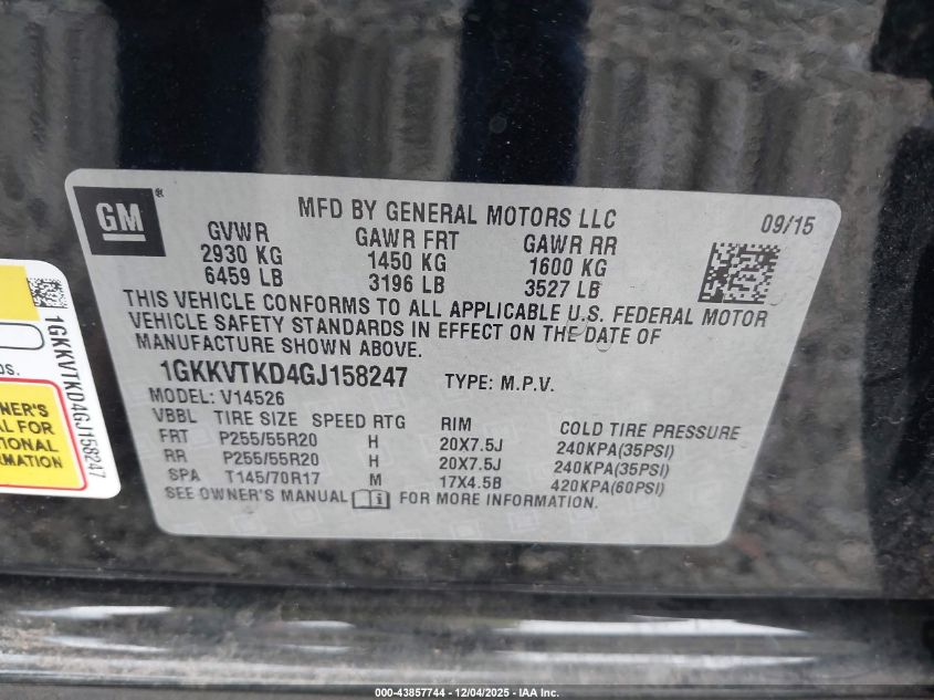 Колір ЧорнийЦиліндри 6Привід Повний привідVIN 1GKKVTKD4GJ158247Стан Заводиться та їде (перевірено)Ушкодження Передня права AutoRIA