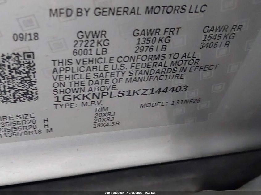 2019 GMC ACADIA 2019 року Бензин, 3.6, Передній привід, vin - 1GKKNPLS1KZ144403 з США