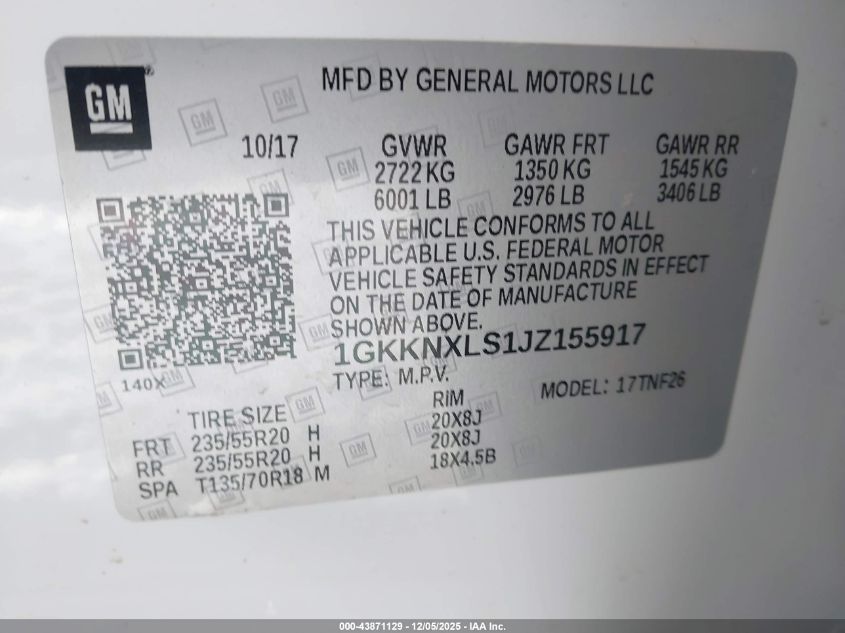 2018 GMC ACADIA 2018 року Бензин, 3.6, Повний привід, vin - 1GKKNXLS1JZ155917 з США