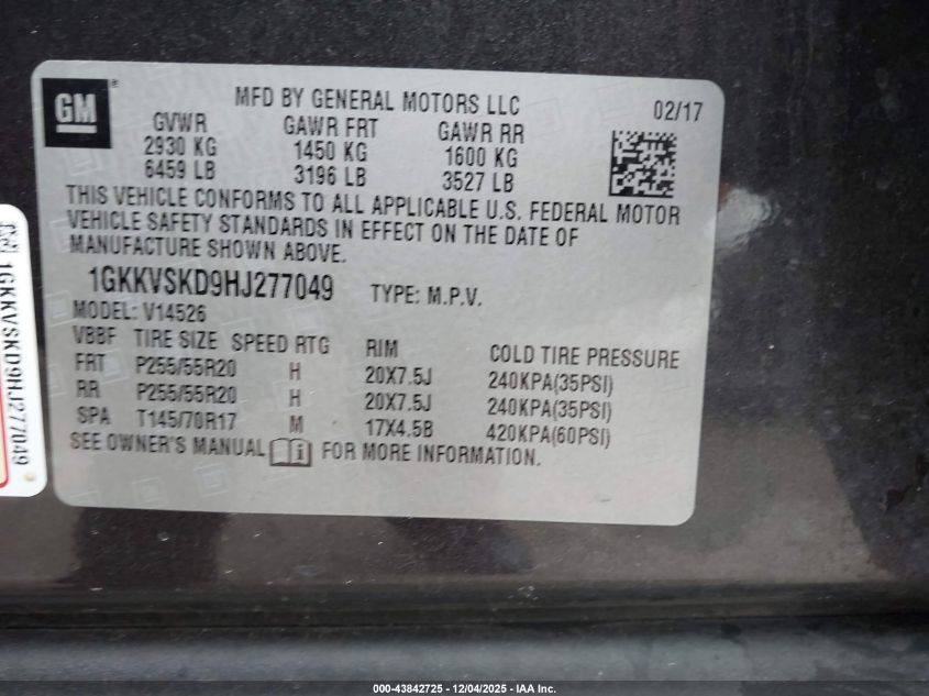 2017 GMC ACADIA 2017 року Бензин, 3.6, Повний привід, vin - 1GKKVSKD9HJ277049 з США