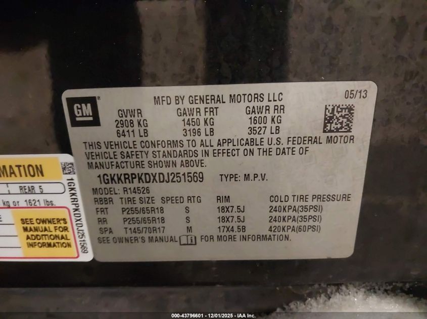 2013 GMC ACADIA 2013 року Бензин, 3.6, Передній привід, vin - 1GKKRPKDXDJ251569 з США