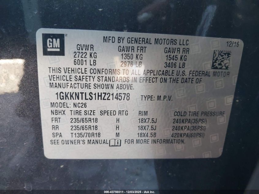 2017 GMC ACADIA 2017 року Бензин, 3.6, Повний привід, vin - 1GKKNTLS1HZ214578 з США