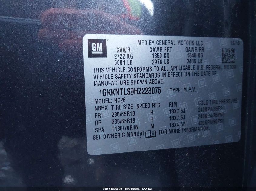2017 GMC ACADIA 2017 року Бензин, 3.6, Повний привід, vin - 1GKKNTLS9HZ223075 з США