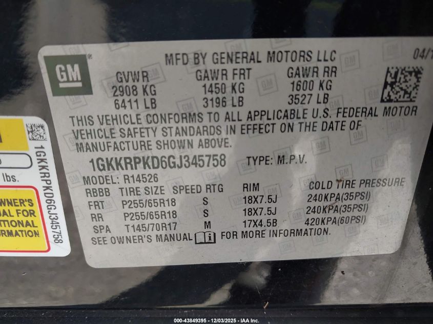 2016 GMC ACADIA 2016 року Бензин, 3.6, Передній привід, vin - 1GKKRPKD6GJ345758 з США