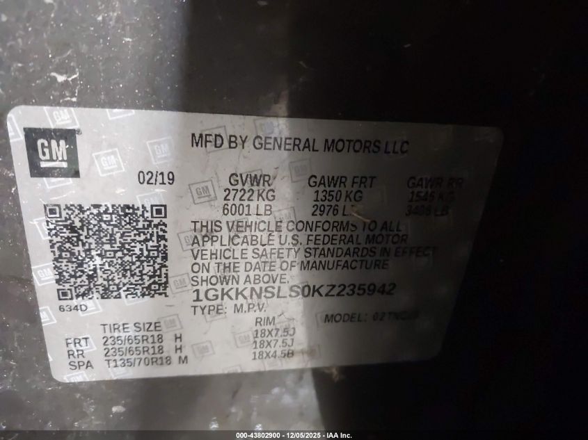 2019 GMC ACADIA 2019 року Бензин, 3.6, Повний привід, vin - 1GKKNSLS0KZ235942 з США