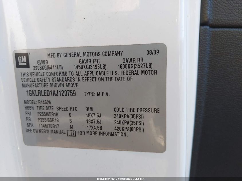 2010 GMC ACADIA 2010 року Бензин, 3.6, Передній привід, vin - 1GKLRLED1AJ120759 з США