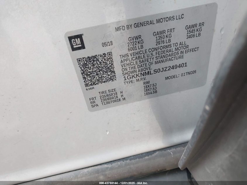2018 GMC ACADIA 2018 року Бензин, 3.6, Передній привід, vin - 1GKKNMLS0JZ249401 з США