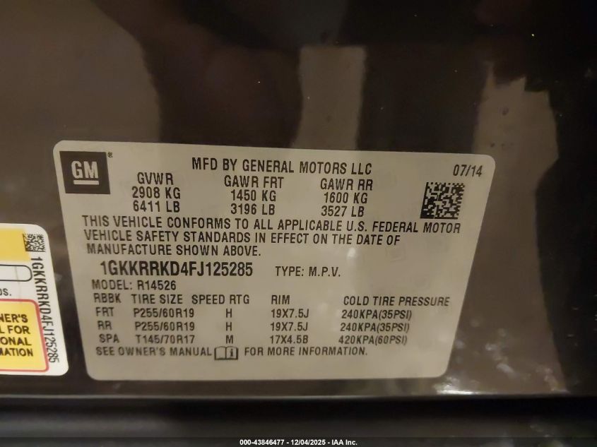 Колір СірийЦиліндри 6Привід Передній привідVIN 1GKKRRKD4FJ125285Стан Заводиться та їде (перевірено)Ушкодження Передня або задня AutoRIA