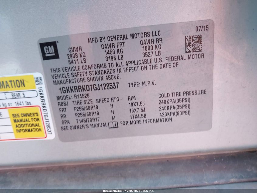 Колір СрібнийЦиліндри 6Привід Передній привідVIN 1GKKRRKD7GJ128537Стан Заводиться та їде (перевірено)Ушкодження Передня ліва AutoRIA