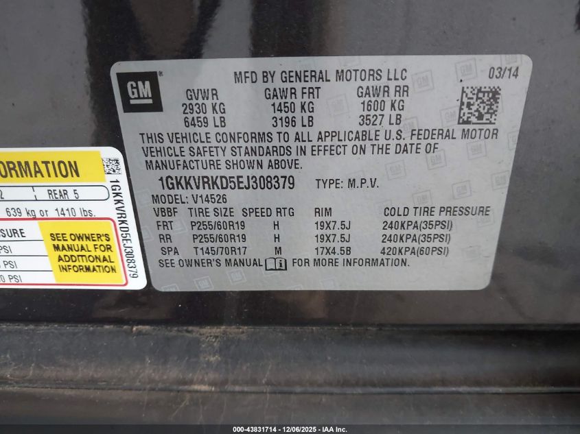 2014 GMC ACADIA 2014 року Бензин, 3.6, Повний привід, vin - 1GKKVRKD5EJ308379 з США