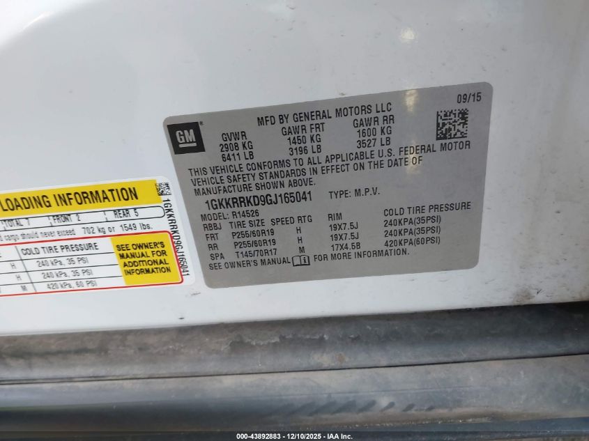 Колір БілийЦиліндри 6Привід Передній привідVIN 1GKKRRKD9GJ165041Стан Заводиться та їде (перевірено)Ушкодження Передня або задня AutoRIA