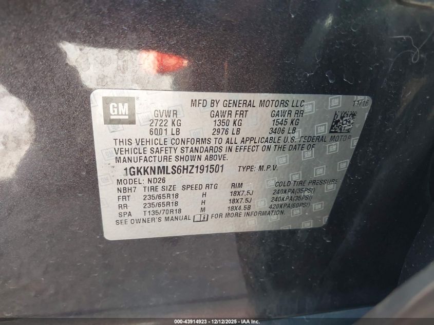 2017 GMC ACADIA 2017 року Бензин, 3.6, Передній привід, vin - 1GKKNMLS6HZ191501 з США