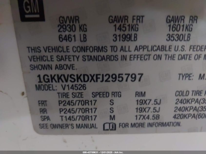 2015 GMC ACADIA 2015 року Бензин, 3.6, Повний привід, vin - 1GKKVSKDXFJ295797 з США