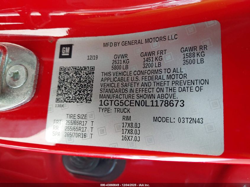 Колір ЧервонийЦиліндри 6VIN 1GTG5CEN0L1178673Стан СтаціонарноУшкодження Передня або задня