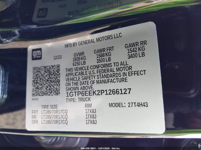 2023 GMC CANYON 2023 року Бензин, 2.7, Повний привід, vin - 1GTP6EEK2P1266127 з США