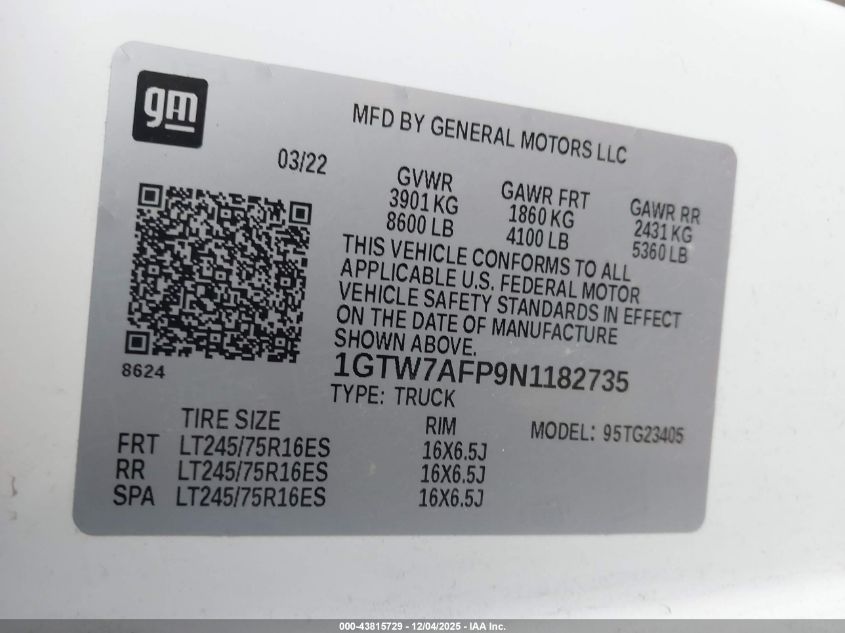 Колір БілийЦиліндри 6Привід Задній привідVIN 1GTW7AFP9N1182735Стан Заводиться та їде (перевірено)Ушкодження Задня