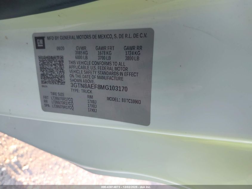 Колір БілийЦиліндри 8VIN 3GTN8AEF8MG103170Стан Заводиться та їде (перевірено)Ушкодження Задня ліва