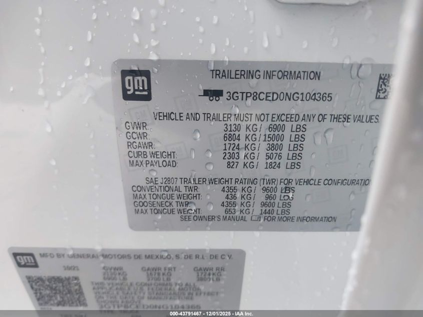 Колір БілийЦиліндри 8VIN 3GTP8CED0NG104365Стан Заводиться та їде (перевірено)Ушкодження Передня або задня