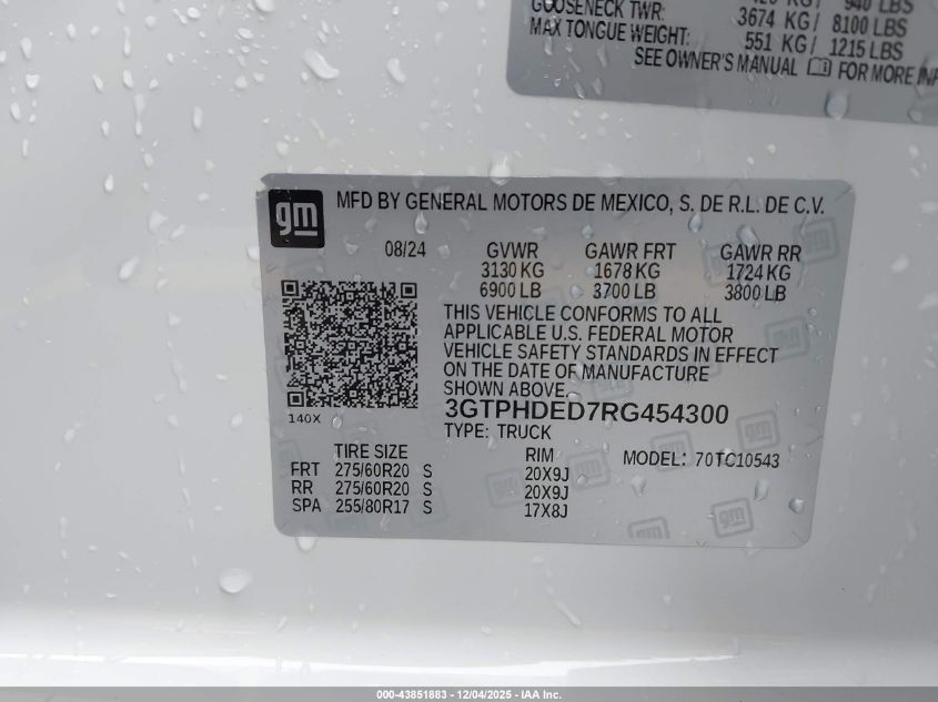 2024 GMC SIERRA 1500 2024 року Бензин, 5.3, , vin - 3GTPHDED7RG454300 з США