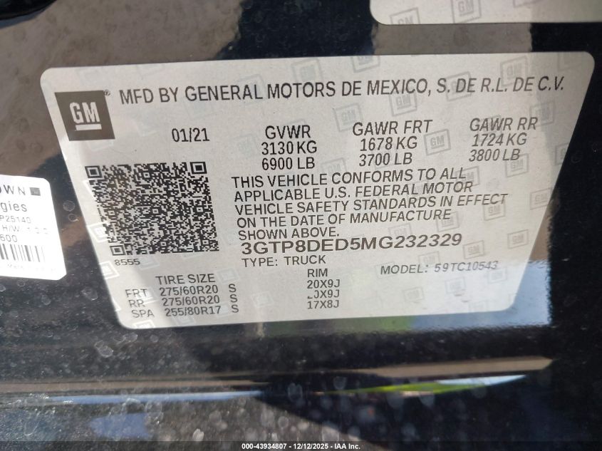 2021 GMC SIERRA 1500 2021 року Бензин, 5.3, , vin - 3GTP8DED5MG232329 з США