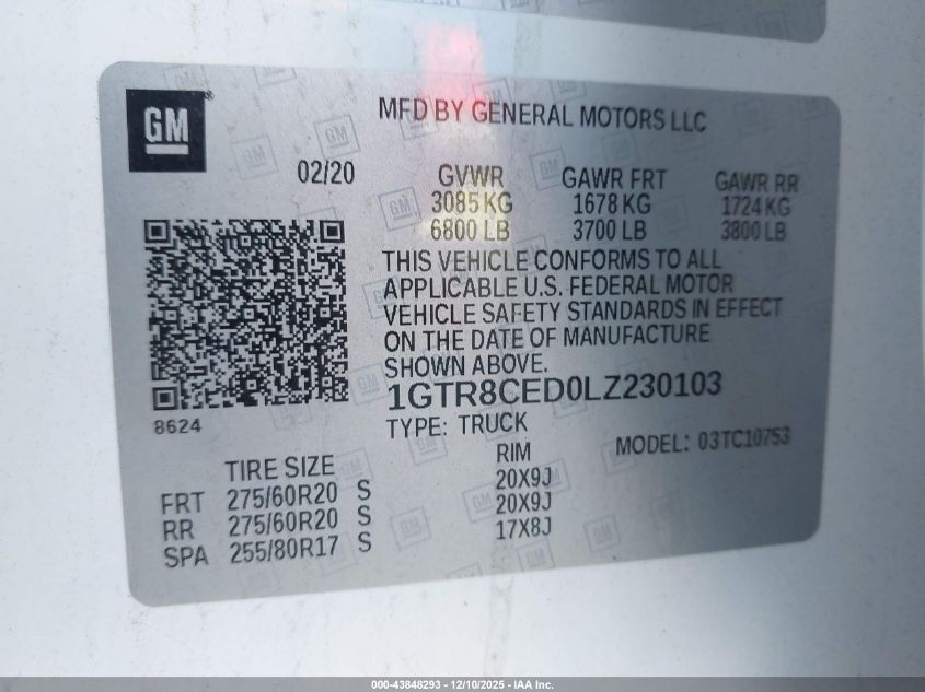 Колір БілийЦиліндри 8VIN 1GTR8CED0LZ230103Стан СтаціонарноУшкодження Передня права